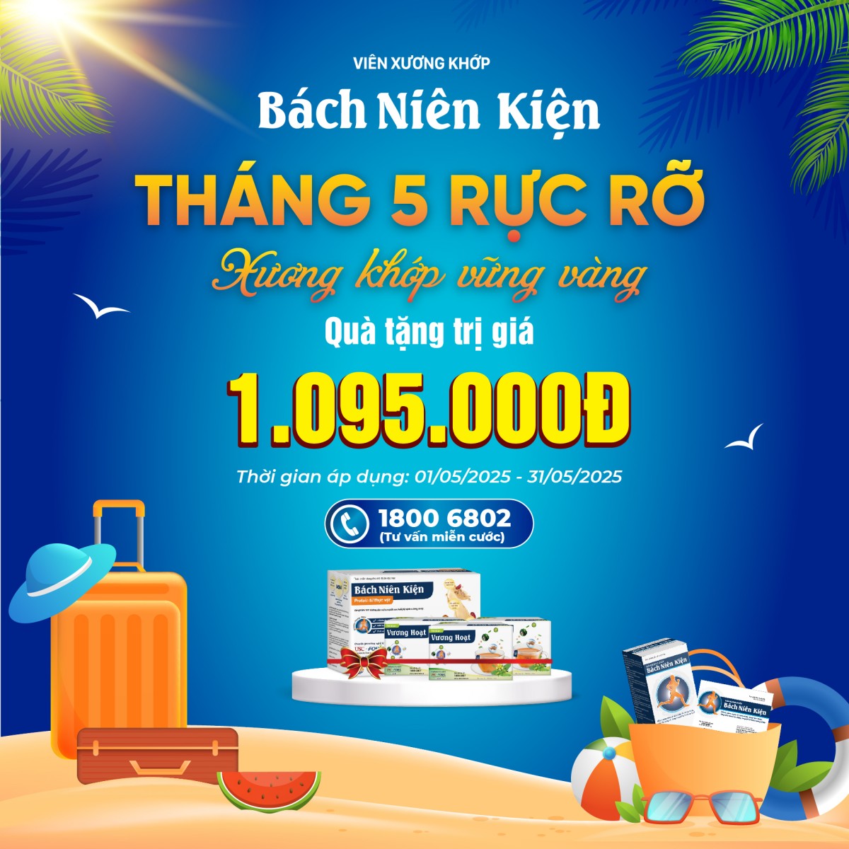 Tận hưởng mùa du lịch Hè vui khỏe – xương khớp không đau nhức cùng Viên xương khớp Bách Niên Kiện. Quý khách sẽ được nhận ngay bộ quà tặng TRỊ GIÁ LÊN ĐẾN 1.095.000Đ.
