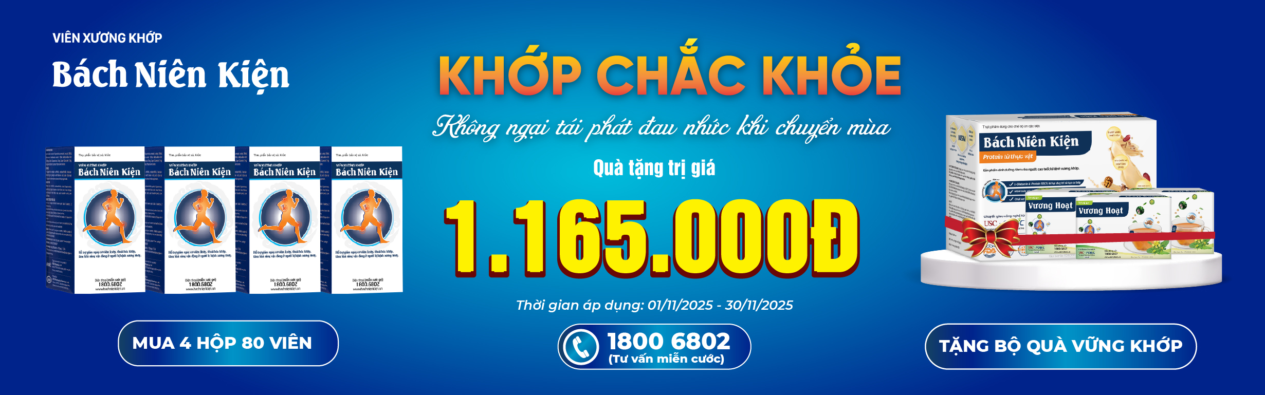 Từ ngày 01/11/2025 đến hết 30/11/2025, khi mua viên xương khớp Bách Niên Kiện chứa chiết xuất Cây Móng Quỷ và Vỏ Liễu Trắng, quý khách cào lấy mã ở tem "Tích điểm - Nhận quà" và tham gia chương trình....