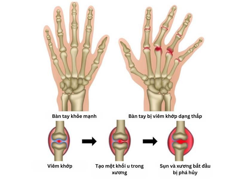 Triệu chứng có thể nhận biết của viêm khớp dạng thấp là: