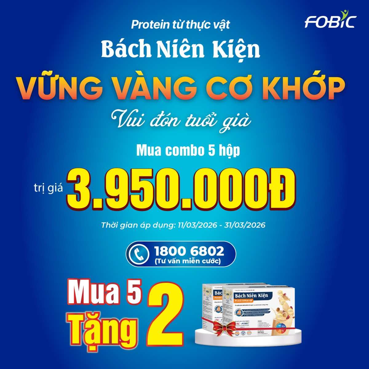 Nếu có bất kỳ thắc mắc nào về chương trình hoặc về sản phẩm Protein từ thực vật Bách Niên Kiện, quý khách vui lòng liên hệ tổng đài miễn phí cước gọi 1800.6802 để được giải đáp chi tiết.