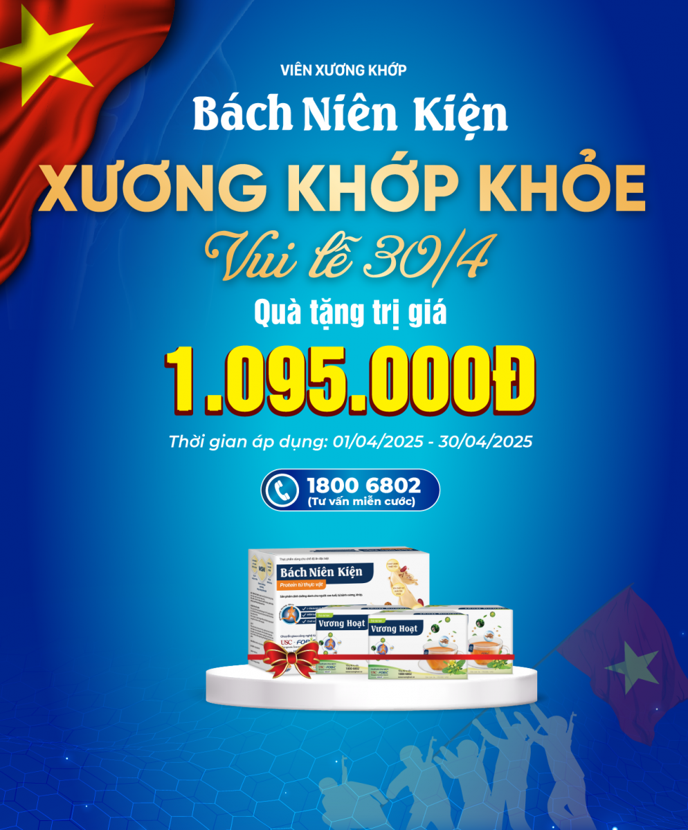 Tận hưởng kỳ nghỉ lễ 30/4 vui khỏe – xương khớp không đau nhức cùng Viên xương khớp Bách Niên Kiện. Quý khách sẽ được nhận ngay bộ quà tặng TRỊ GIÁ LÊN ĐẾN 1.095.000Đ.